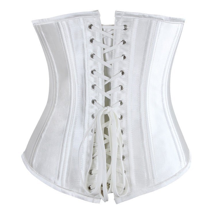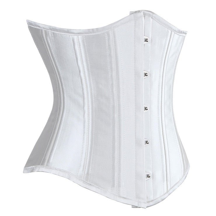 Satin Underbust Crossdresser Corset with Busk Closure White