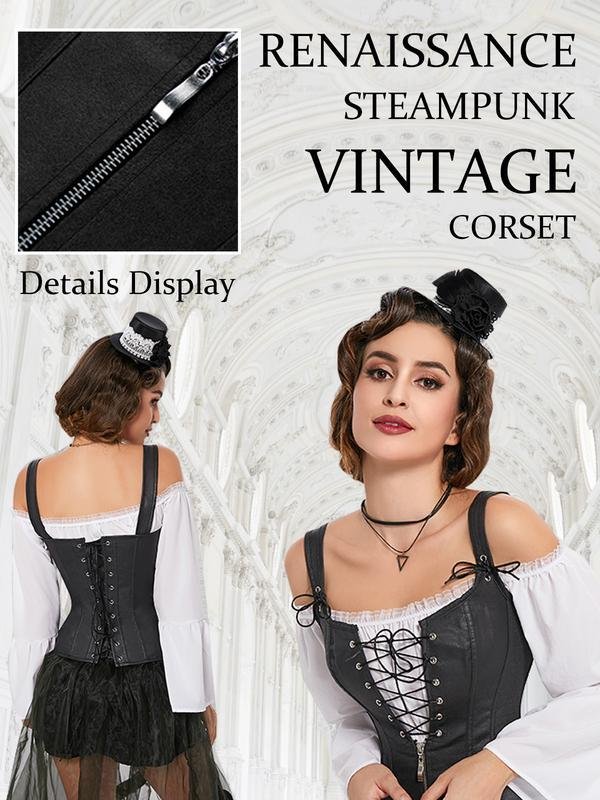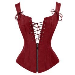 Embrace gothic steampunk fashion with this strappy crossdresser corset. It comes different colours: Black (Imitation lambskin) | Black (PU) | Black (Faux Leather) | Brown | Red | Burgundy Red.